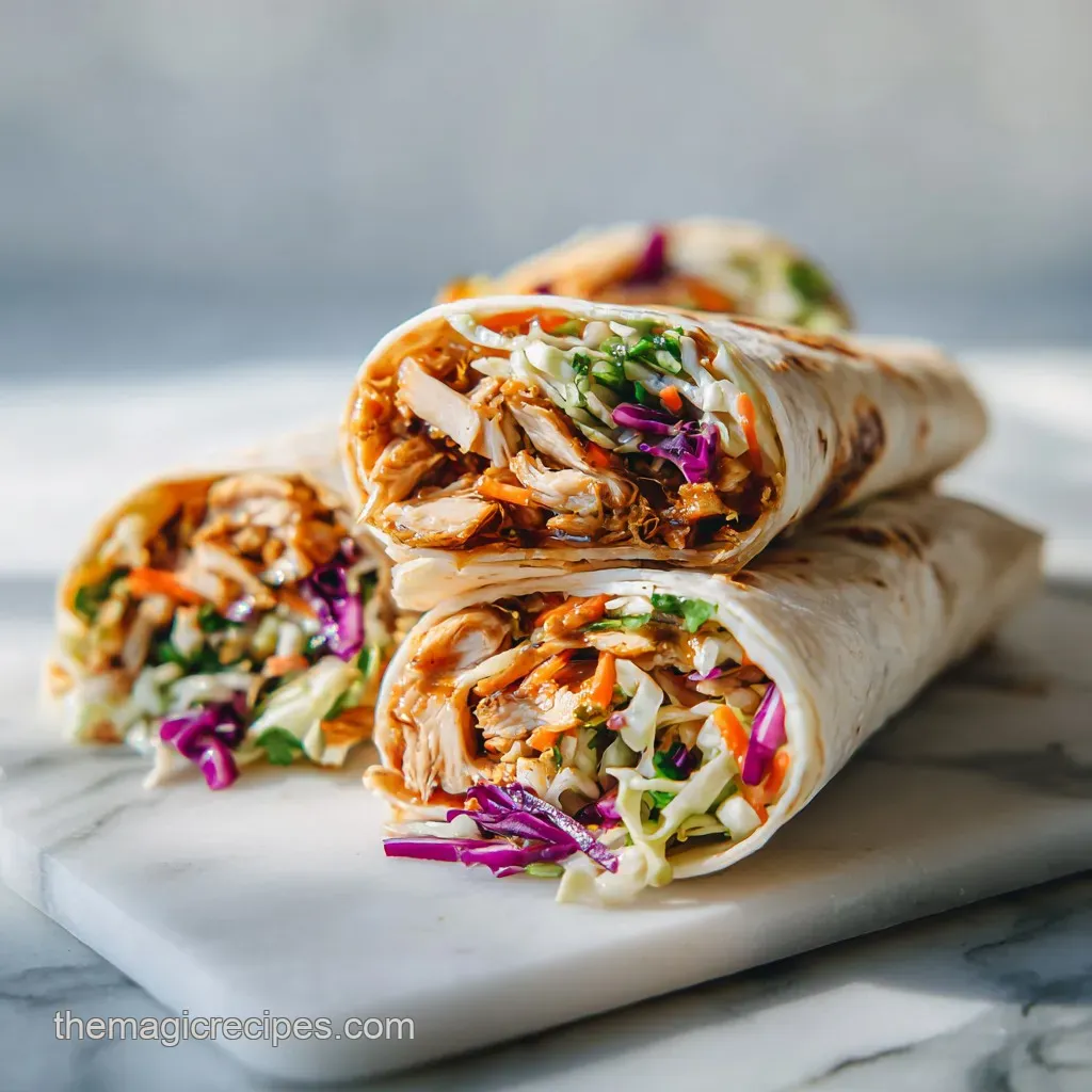 Asian Chicken Wraps: Savory Peanut Glaze and Crunchy Slaw