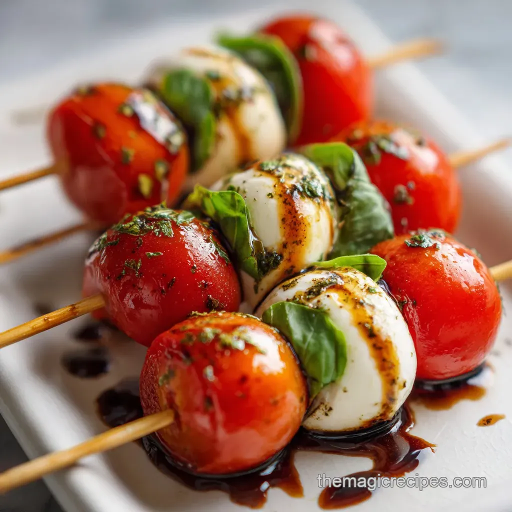 Don't forget that the balsamic glaze is your "ink." Use it to draw long, elegant lines across the entire platter once the skewers are laid out. It ties the whole dish together visually and ensures every guest gets a bit of that tangy sweetness.