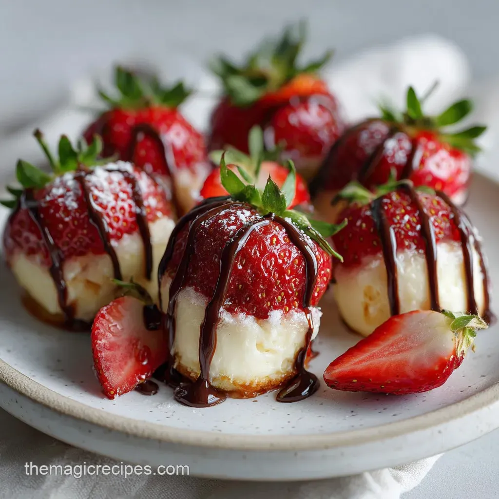 - Elegant Cheesecake Stuffed Strawberry Easy Valentines Day Dessert Idea with Chocolate Drizzle