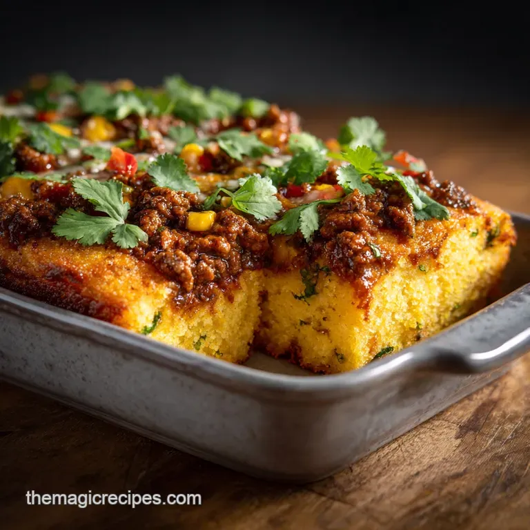 This dish works because of structural and flavor contrast. The richness of the ground beef and the smoky depth of the spices are perfectly balanced by the tang and sweetness of the buttermilk cornbread.