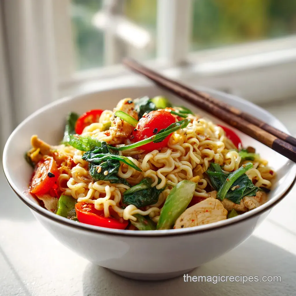The "unhealthy" reputation of ramen comes almost entirely from the deep fried noodles and the chemical laden seasoning packets. By using just the noodles as a base and loading the dish with fresh vegetables and lean chicken, you're creating a balanced, fiber rich meal. It's all about what you add to the bowl.