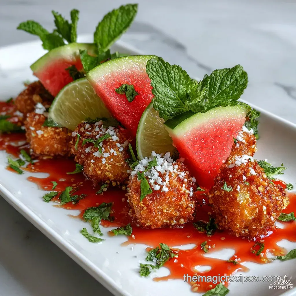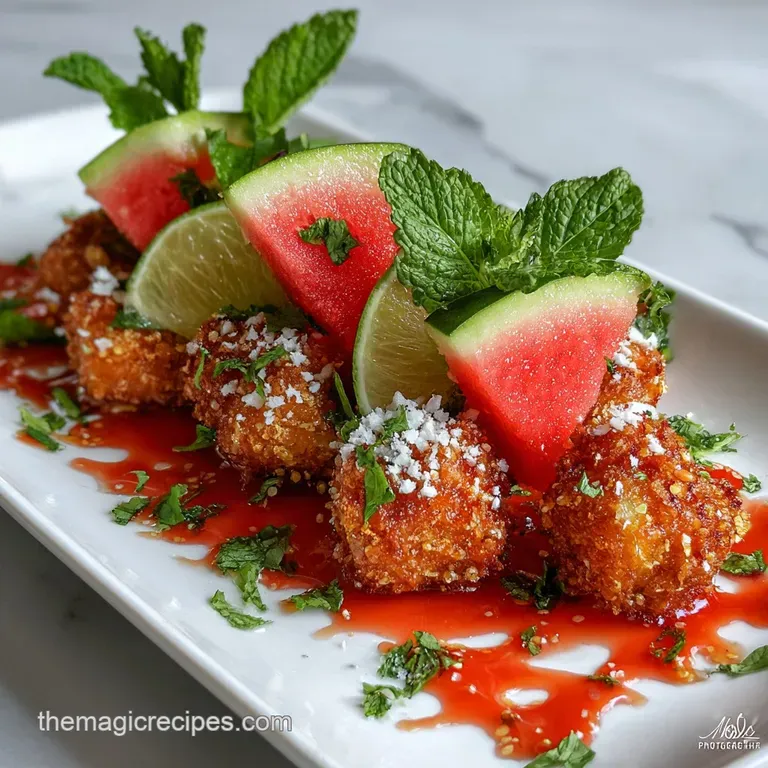 - Flavor/Texture Hook: Shattering crisp watermelon paired with velvety whipped feta and tangy balsamic