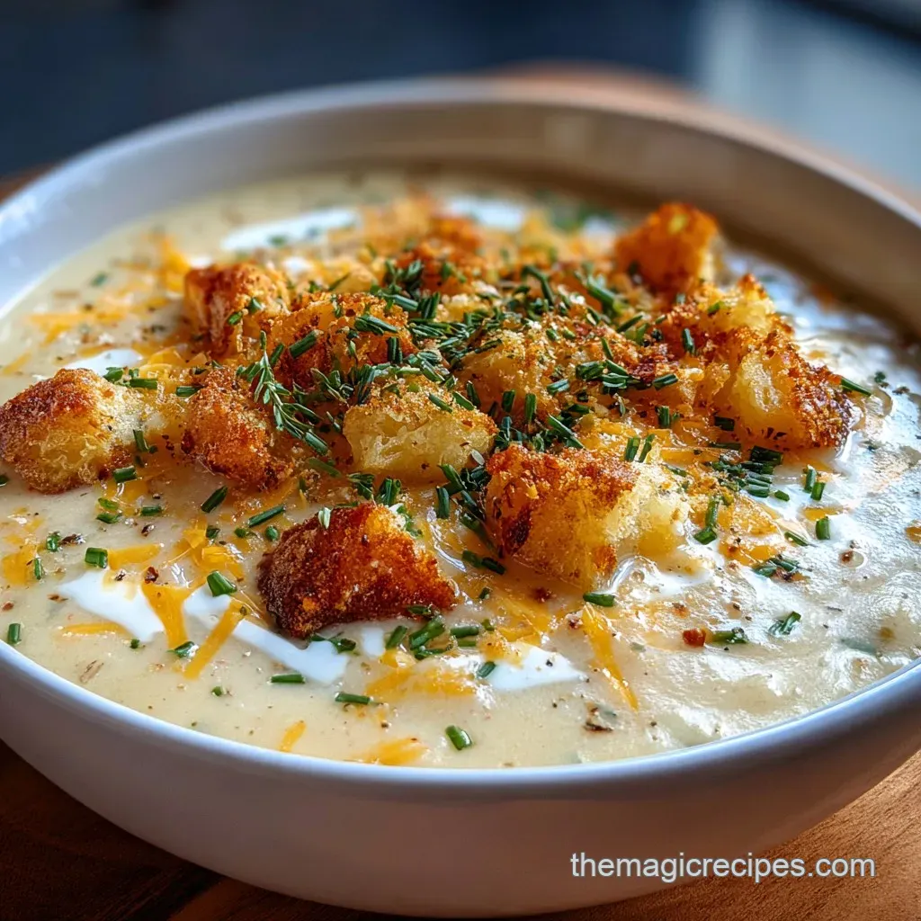 To lean into the baked potato vibe, swap half of the chicken broth for whole milk. When serving, add a massive dollop of sour cream and some extra chives. It makes the soup much heavier and more like a meal you'd find at a steakhouse.