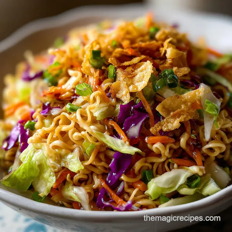 Toast your ramen noodles in butter for 3-5 minutes until golden brown to prevent them from becoming soggy. Ensure all dressing ingredients are well combined by shaking or whisking vigorously until emulsified before dressing the salad. For a crispier salad, toss the toasted noodles in just before serving. If you enjoyed mastering the crunch technique here, see how it applies to creating texture in our Croutons: The Ultimate Crispy Homemade Croutons Recipe.