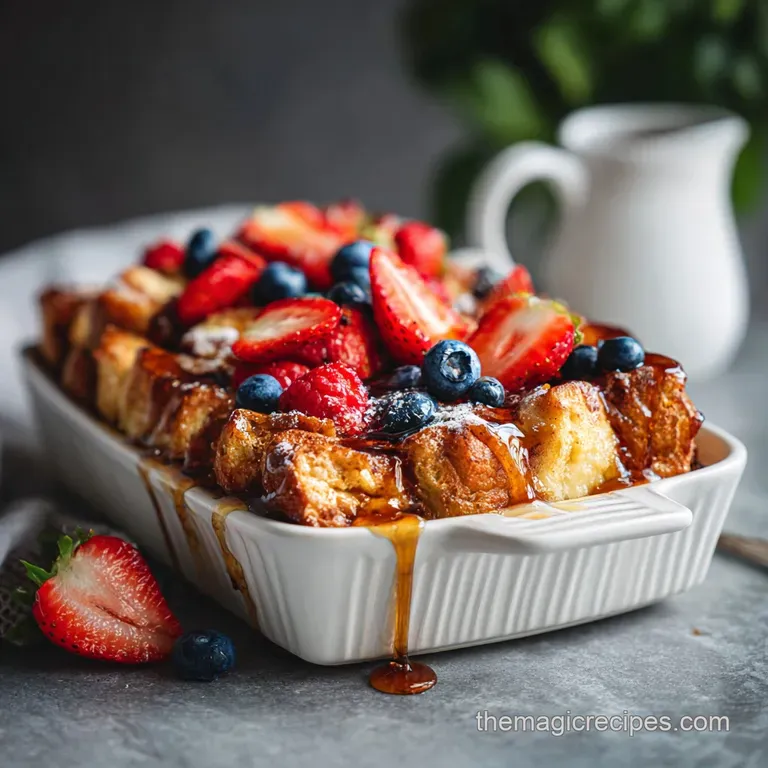 I like to keep the toppings functional. Since the French Toast Casserole already has maple syrup in the custard, you don't need to drown it in more syrup. A light dusting of powdered sugar or a dollop of Greek yogurt adds a nice tang that cuts through the richness of the brioche.