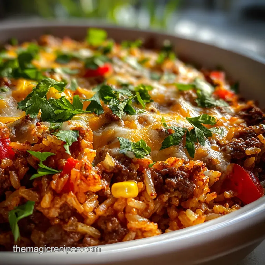One Pot Beef Rice with Cheesy Finish