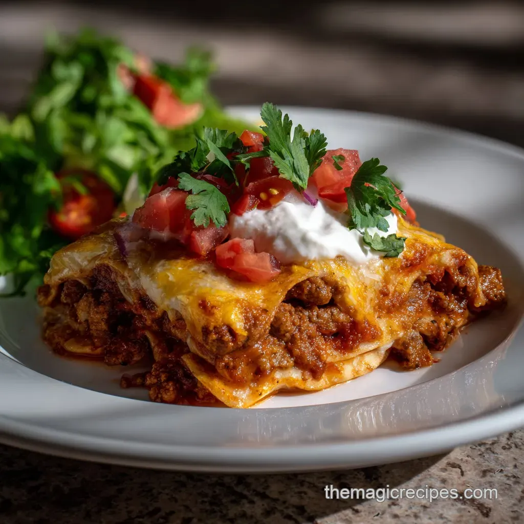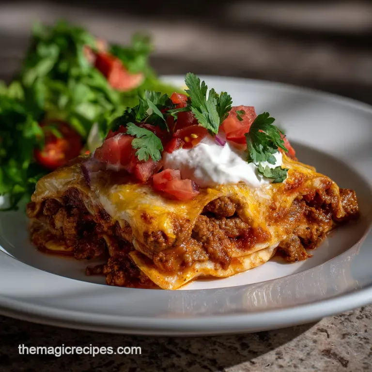 Scaling Down (1/2 Batch): Use an 8x8 inch (20x20 cm) pan. You'll only need 1 lb of beef and 6 tortillas. Reduce the baking time to about 20-25 minutes.