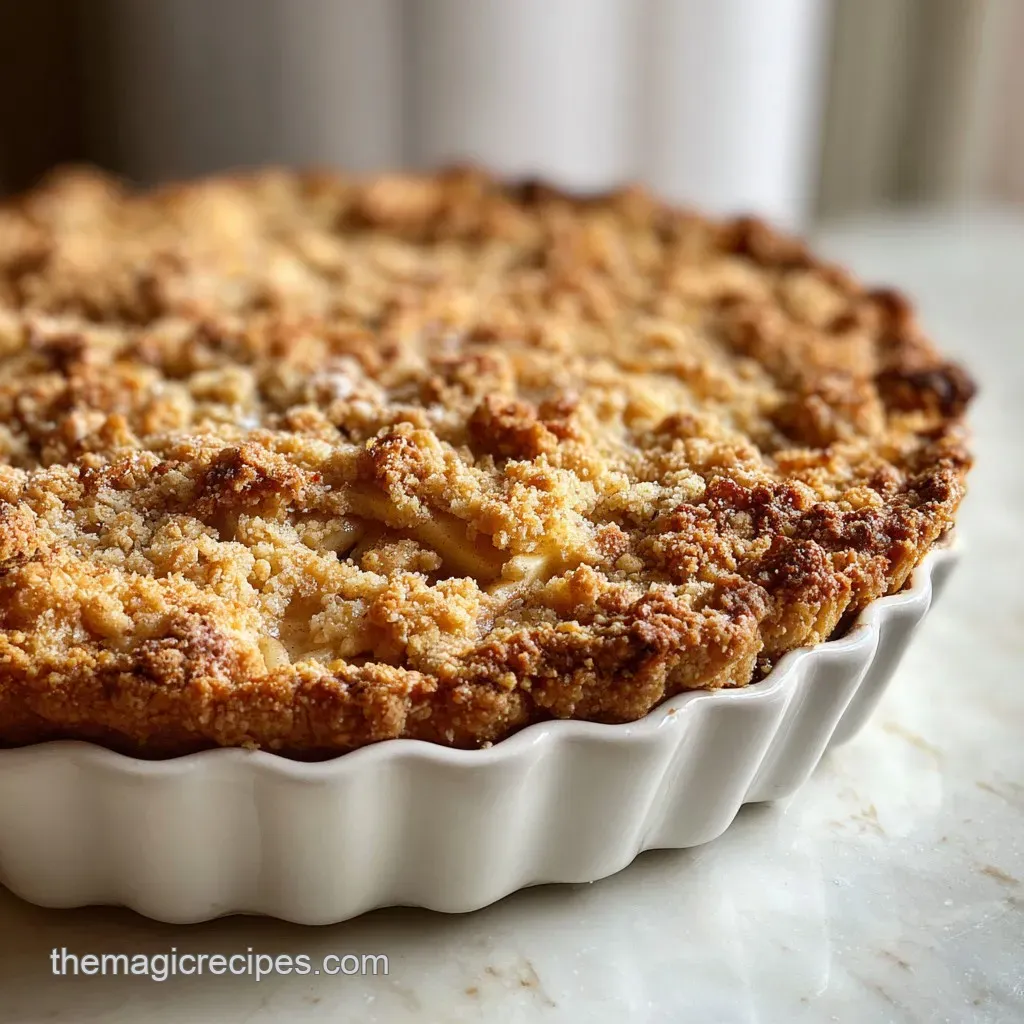 It is a single crust pie topped with a buttery, crumbly streusel topping. Instead of sealing the fruit entirely, the topping allows steam to escape while creating a satisfying textural contrast to the soft, spiced filling.